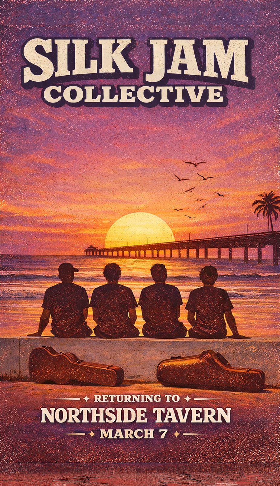 Silk Jam Collective returns to Northside Tavern for a night of great music, good people, and classic OB energy. 📍 Northside Tavern – Ocean Beach 📅 March 7 ⏰ 7PM Come early, grab a drink, and settle in for a sunset session you don’t want to miss.Monday March 9th