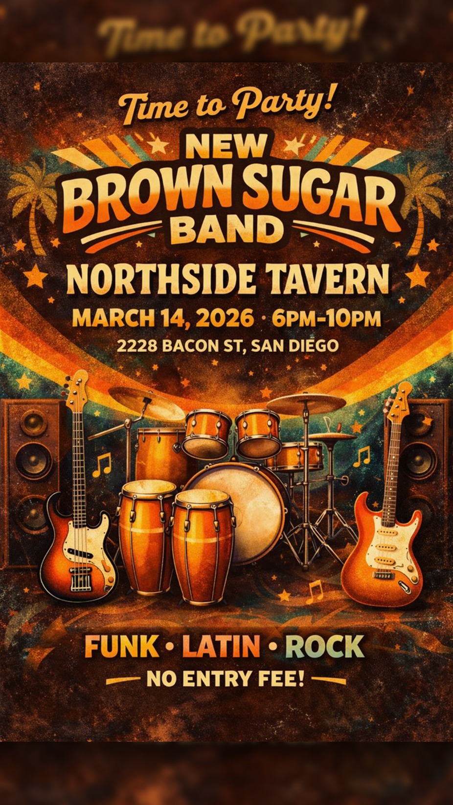 New Brown Sugar is bringing the energy to OB on Saturday, March 14. Get ready for a night of great music and good vibes from 6PM–10PM.